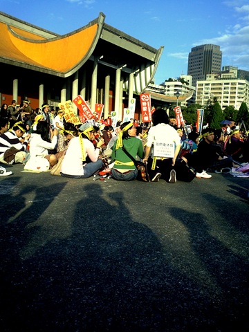 到了國父紀念館,那里搭起舞臺,游行隊伍圍著舞臺,席地而坐。除了主辦單位發表演說,還有各東南亞移工組織的表演。然而他們的表演有傳統舞蹈外,較多是話劇,內容都是講述外籍家庭看護,在家里受氣,可是得不到假期的故事情節。讓我印象深刻的是有兩個殘障人士,帶著他們的外籍看護上臺獻唱鄧麗君的歌。據了解,除了一些雇主不讓他們的外籍看護休假,另外部分雇主則想讓外籍看護休假,可是在申請臨時看護時卻因法令關系而被拒絕。可見外籍看護的限制更大來自法律,當然還有其他領域的移工包括在內。